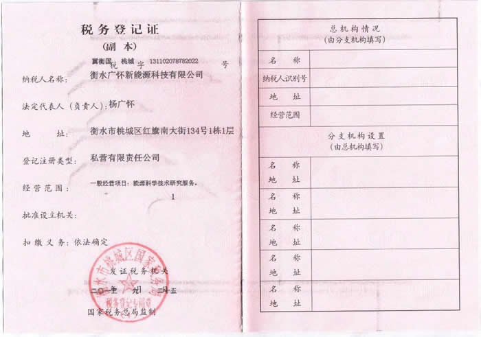 衡水广怀新能源科技有限公司税务登记证(国税副本)