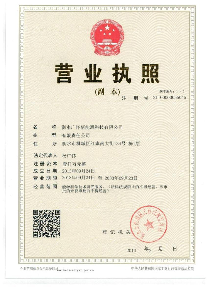 衡水广怀新能源科技有限公司企业法人营业执照(副本)