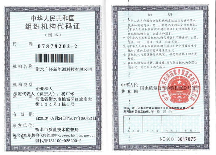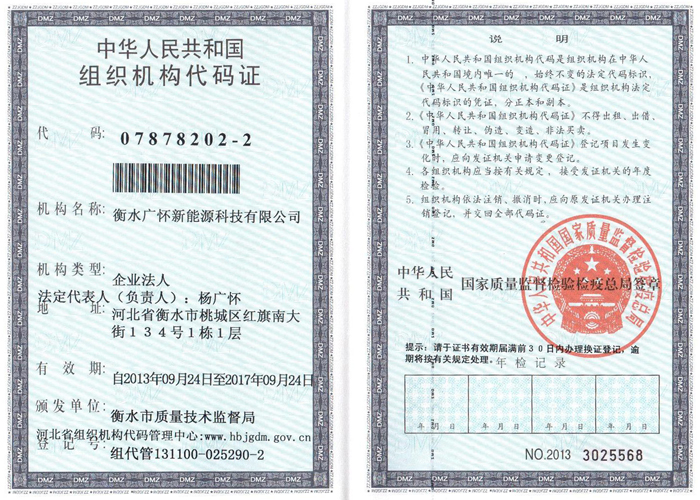 衡水广怀新能源科技有限公司组织机构代码证(正本)