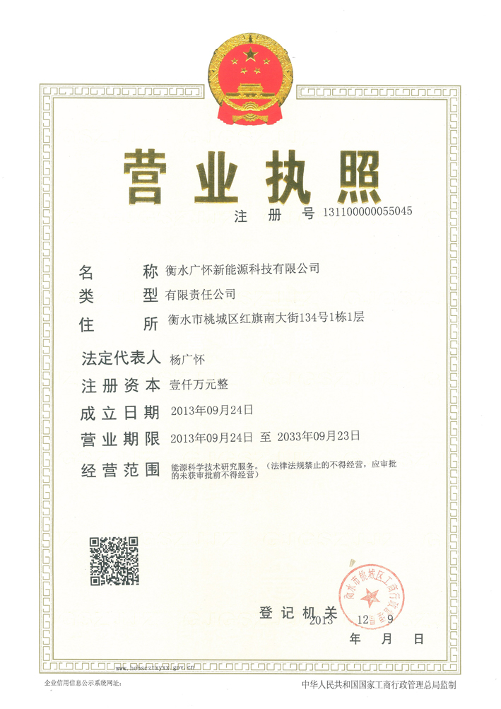 衡水广怀新能源科技有限公司企业法人营业执照(正本)
